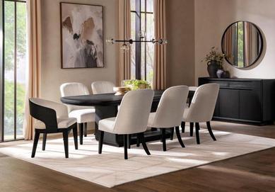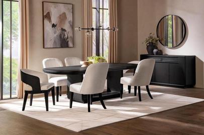 noir wood finish & beige chairs